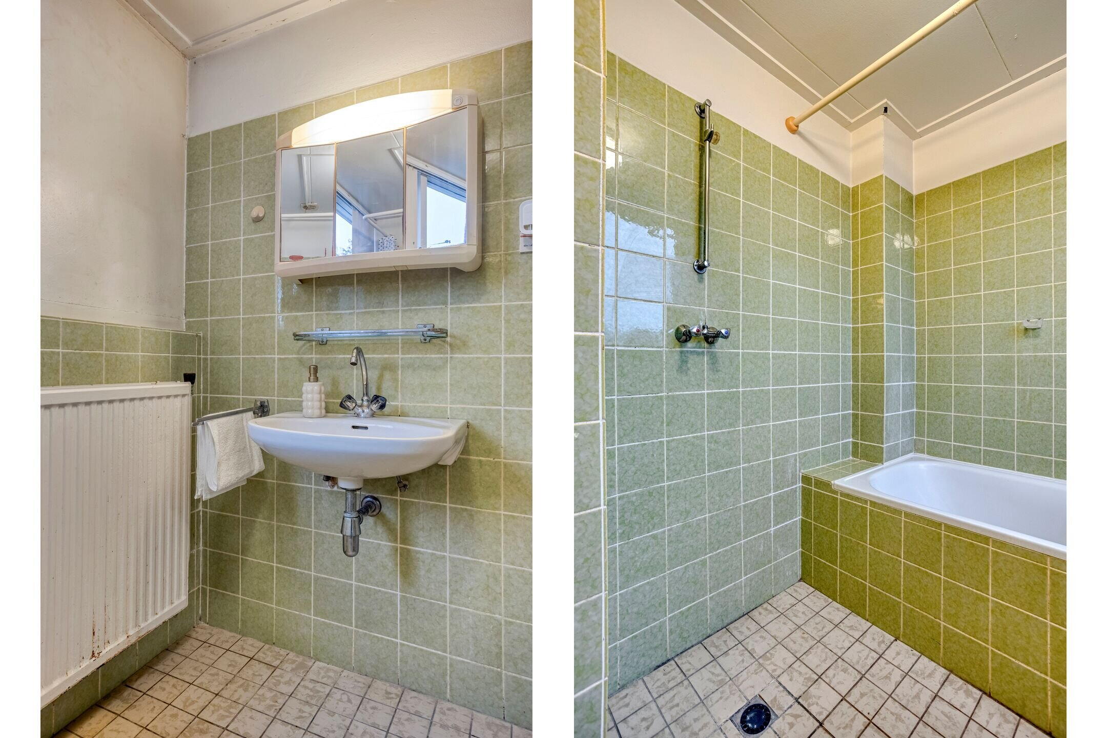 Op de eerste verdieping bevinden zich drie slaapkamers en de badkamer. De hoofdslaapkamer is opvallend ruim en strekt zich uit over de volledige breedte van de woning. De overige twee slaapkamers op deze verdieping zijn goed van formaat en licht. Eén van deze kamers is voorzien van een eigen wastafel. De badkamer is voorzien van ligbad, douche, toilet en vaste wastafel en biedt mogelijkheden voor modernisering naar eigen wens.