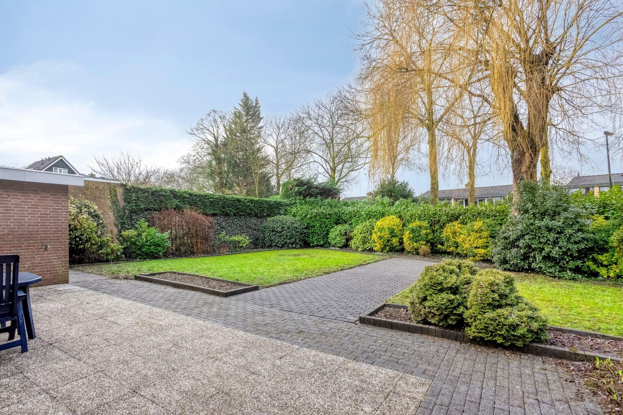 De woning is gelegen in een rustige, autoluwe hof. De rijkelijk groene achterzijde van de tuin grenst over de volle breedte aan een breed autoloos fiets- en voetpad, waardoor de tuin vrij en opvallend rustig ligt. Deze combinatie van privacy, zonligging en centrumlocatie komt zelden voor.