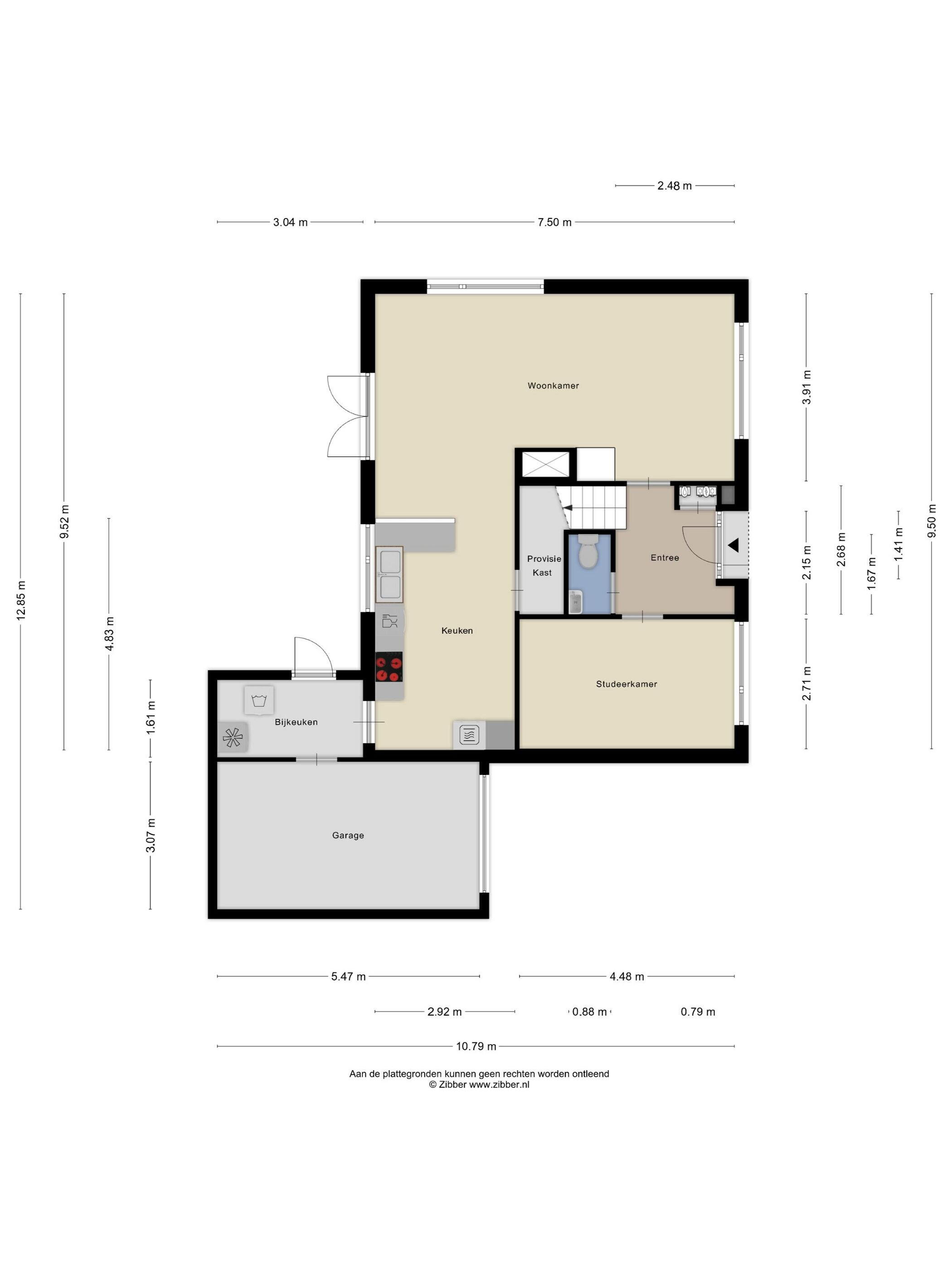 Vanuit de keuken bereik je de bijkeuken/achterportaal, met aansluitend de ruime garage. In de bijkeuken bevinden zich de witgoedaansluitingen en is er directe toegang tot zowel de tuin als de garage. Dit maakt de ruimte ideaal als achterentree.